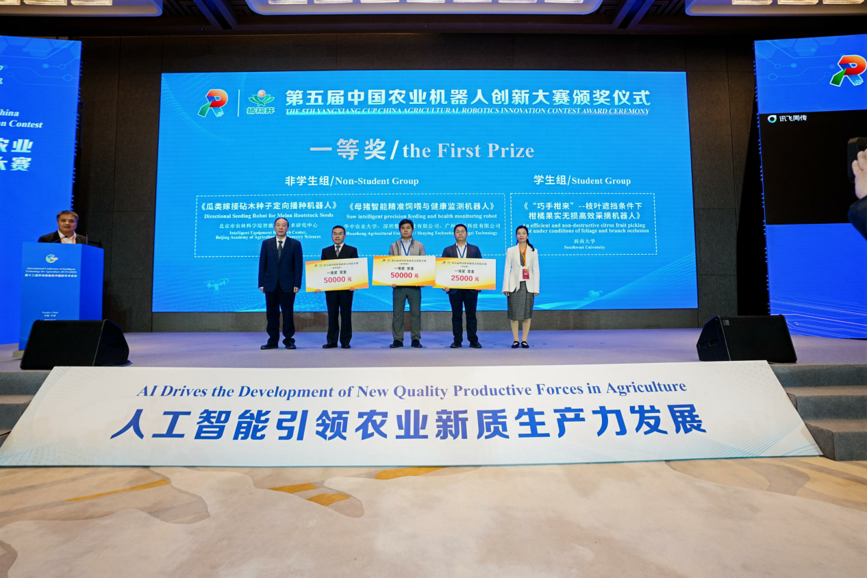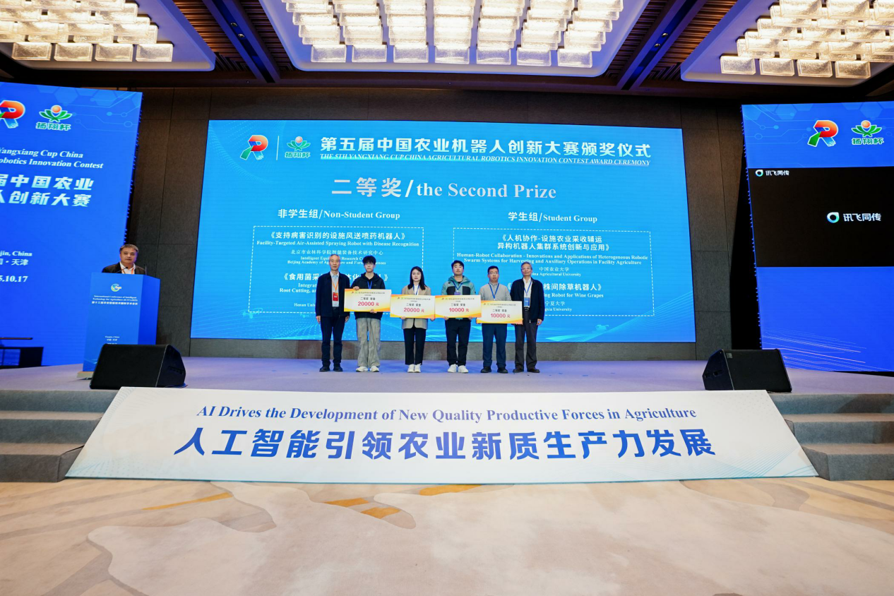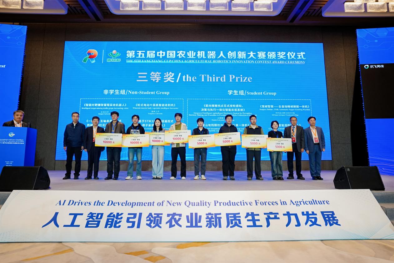 开幕式上,京津冀协同创新联盟发布了“联盟主推技术、产品和模式”。会上,北京农业人工智能与机器人研究院与北京人形机器人创新中心有限公司完成了战略合作签约,双方将共同探索“人形机器人平台+垂直农业场景”的创新模式。最后举行了“扬翔杯”第五届中国农业机器人创新大赛颁奖仪式。中国农业机器人创新大赛是由中国人工智能学会主办,于2021年首创的农业机器人领域技术竞技平台,旨在聚焦国家重大战略需求,开展本领域前沿技术竞赛,推动农业机器人领域的技术创新和产业升级,已累计颁发奖项97个,本届获奖项目18项。