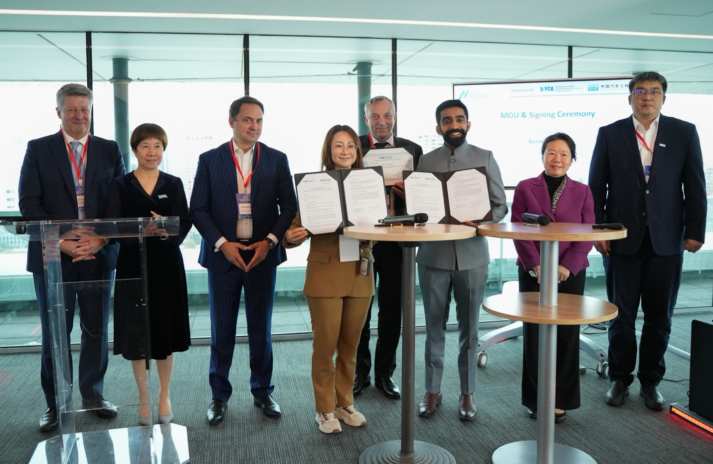 开幕式同期举行合作签约与会员授证仪式:IHFCA与Green Hydrogen India签署合作备忘录,将在氢能项目落地、技术交流与标准对接上深化协作;Mincatec Energy正式获颁IHFCA会员证书,标志其金属氢化物固态储氢技术进一步融入全球氢能生态。