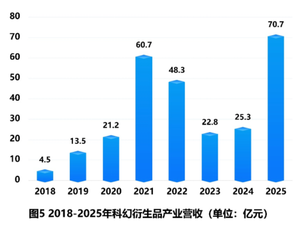 科幻衍生品产业全年总营收70.7亿元,同比增长179.4%。原创IP是市场核心动力,AI潮玩等新形态产品为市场注入新的活力。