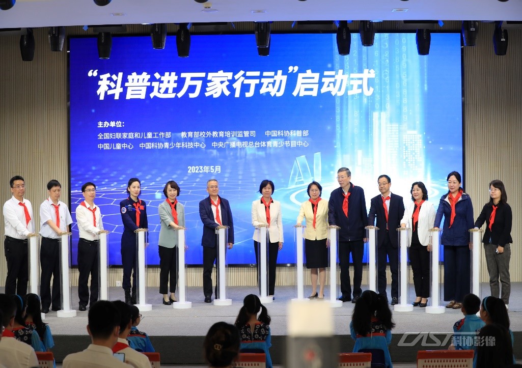 “科普进万家行动”启动式由全国妇联家庭与儿童工作部、教育部校外教育培训监管司、中国科协科普部、中国儿童中心、中国科协青少年科技中心、中央广播电视总台体育青少节目中心联合主办,旨在深入学习宣传贯彻党的二十大精神,贯彻落实习近平总书记关于注重家庭家教家风建设、科技创新重要论述,深入实施《全民科学素质行动规划纲要(2021-2035)》、《教育部等十八部门关于加强新时代中小学科学教育工作的意见》,切实发挥校外教育阵地作用,推动面向广大家庭普及科学知识,弘扬科学精神和科学家精神,助力提升全民科学素质。启动式上,中国科学院院士武向平、英雄航天员王亚平分别以“认识我们的宇宙”和“心有凌云志手可摘星辰”为题作科普报告,为孩子们播撒科学的种子,点燃科学的梦想。