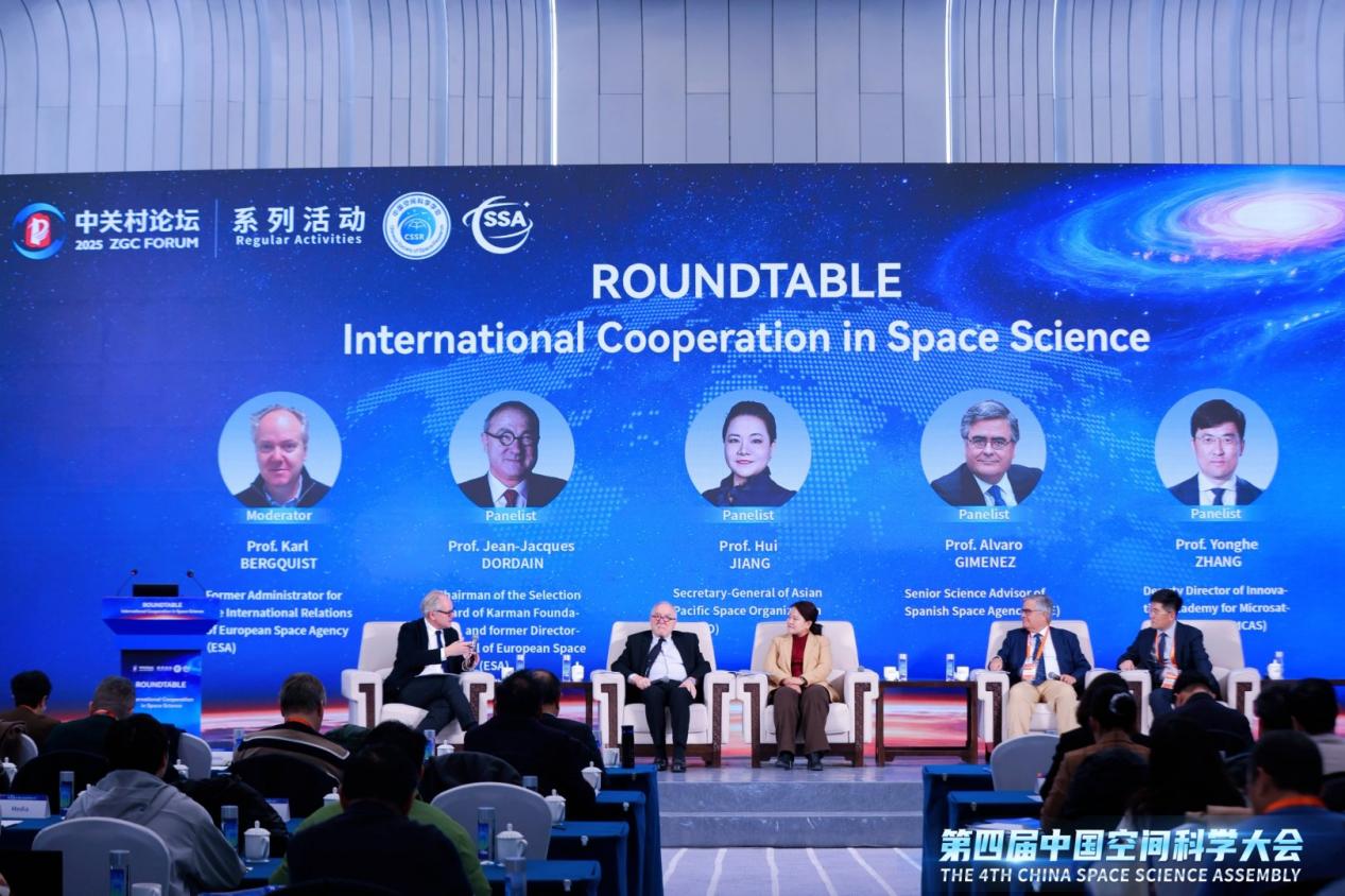 作为第四届中国空间科学大会的重要版块,国际空间科学家圆桌会议于11月21日由学会首次主办,主题为“空间科学的国际合作”。学会理事长吴季、欧洲空间局(ESA)前局长让·雅克·多尔丹、ESA前国际关系高级主管卡尔·伯奎斯特、西班牙空间局(AEE)高级科学顾问阿尔瓦诺·吉梅内兹、亚太空间合作组织(APSCO)秘书长江辉、中国科学院微小卫星创新研究院(IAMCAS)副院长张永合等专家进行了交流研讨。