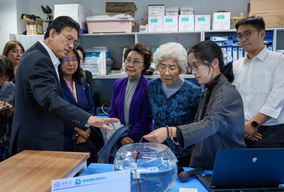 会后,专家们赴清华大学神经调控国家工程研究中心实地考察,深入了解神经调控技术从基础研究到临床转化的全链条进展情况。清华大学神经调控国家工程研究中心主任、中国科学院院士李路明介绍了国产脑起搏器、“人工脊髓”系统等前沿设备的研发与应用情况,并展望了通过融合脑电信息与人工智能构建“智能体”以深化脑科学研究的未来图景。