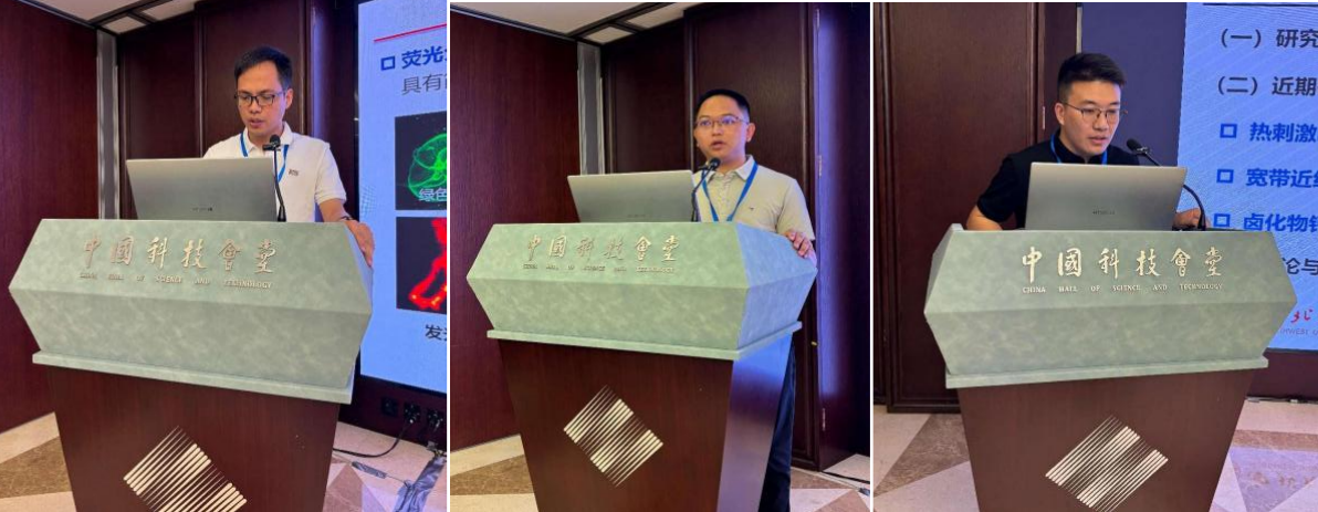 主旨报告环节,宋晓荣以“近红外发光纳米探针及疾病诊断研究”为题,系统阐述了其团队在纳米荧光探针领域的创新成果,该团队基于稀土离子时间分辨发光技术与近红外二区发光分子探针设计,成功开发多款高灵敏纳米探针,解决传统荧光检测中背景干扰强、成像信噪比低等难题,为肿瘤、血栓及器官损伤的早期诊断提供新技术路径。与会青年科学家围绕探针生物安全性、多模态成像融合及临床转化路径等提问交流。中国科学院物构所宋良作“稀土发光分析与诊疗应用研究”报告,系统展示了稀土掺杂纳米材料的长余辉发光特性及其在深层组织穿透成像中的优势,并分享其团队在生物医学领域的多项突破性成果。与会青年科学家就探针时空分辨率优化、多模态诊疗协同及产业化路径进行探讨。河北工业大学索浩在“刺激响应型智能近红外发光材料的研究”报告中,重点介绍其课题组近三年在温度及应力刺激响应型近红外发光材料的研制与生物医疗应用探索情况。与会青年科学家针对结构调控、发光响应特性等方面提问交流。