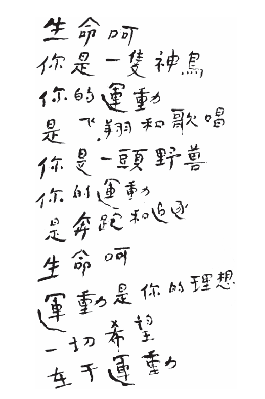像葡萄酒一般殷红的血,比葡萄酒更为鲜明活跃,自肥嫩而有弹性的心房出发,按着心房一放一收的节拍,顺着血管的一胀一缩,像潮水一般汹涌地奔流于全身,分送食粮与各器官、各组织、各细胞;又收集了各处的污物,到了肺,经过氧气的洗涤之后,复归至心房,这样地循环不已,昼夜不息。