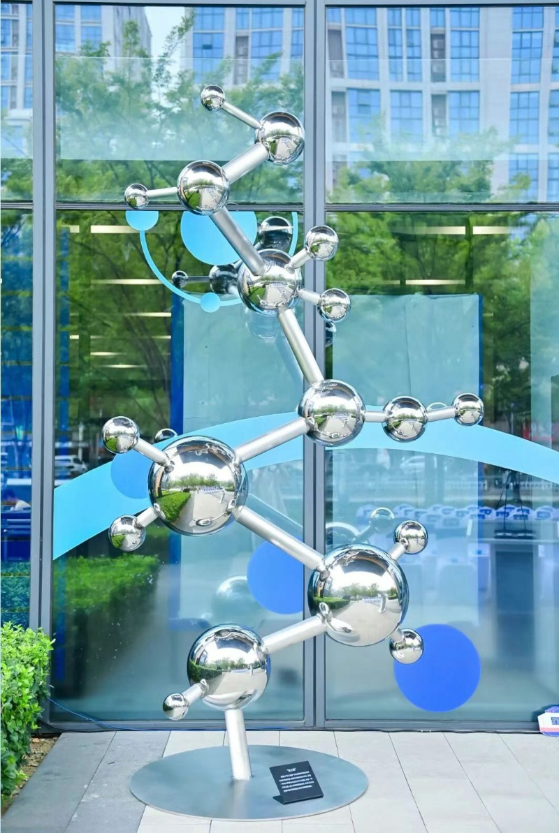 步入特展,首先映入眼帘的便是极具设计感的“星之链”雕塑。这件以“高士其星”与生物蛋白链式结构为灵感的艺术装置,以现代设计语言传递着科学的不断发展和澎湃活力,也象征着2025年全国科普月的新形象。展区中央,通过先进扫描打印技术复刻自福州高士其故居的3D胸像,让先生跨越时空与参观者“对话”。