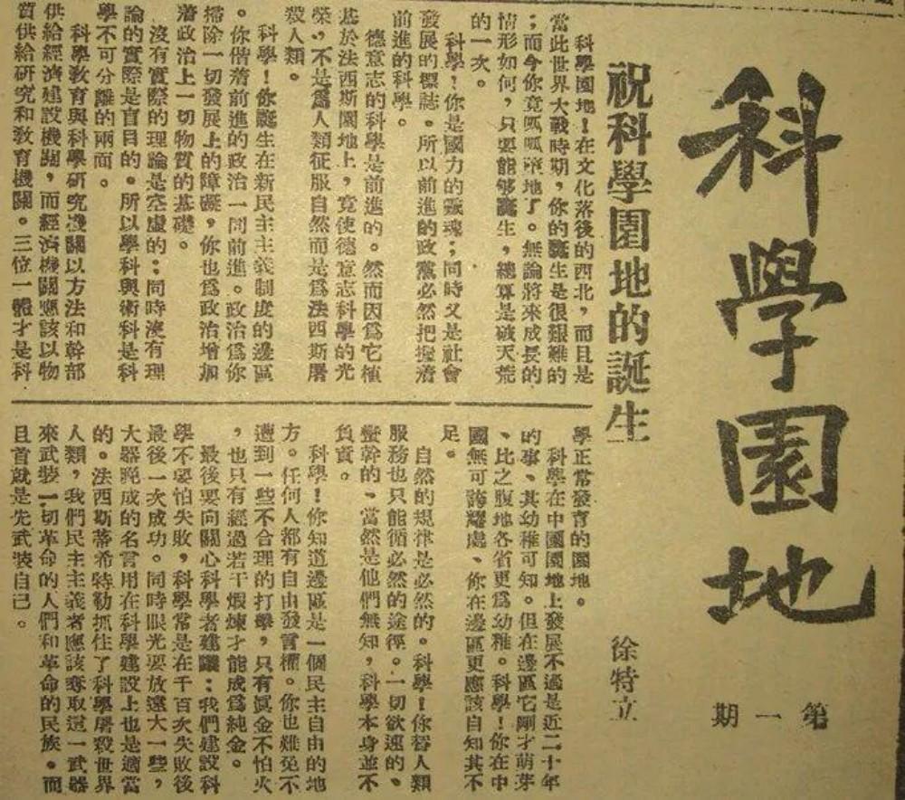 自然科学研究会在《解放日报》上开办了《科学园地》副刊,徐特立写的发刊词