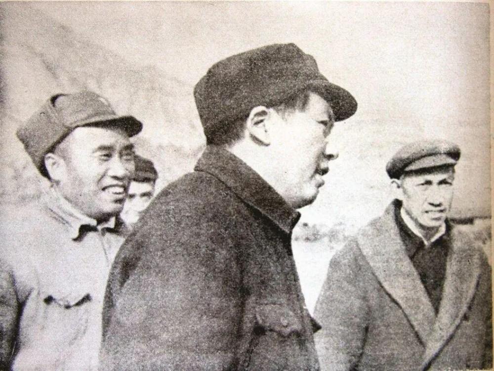 毛泽东(中)、朱德(左)和自然科学研究会会长吴玉章(右)在延安