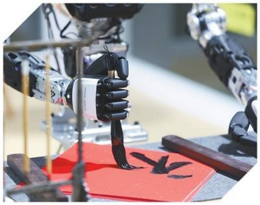 人形机器人在展示写毛笔字。 本报记者 张武军摄