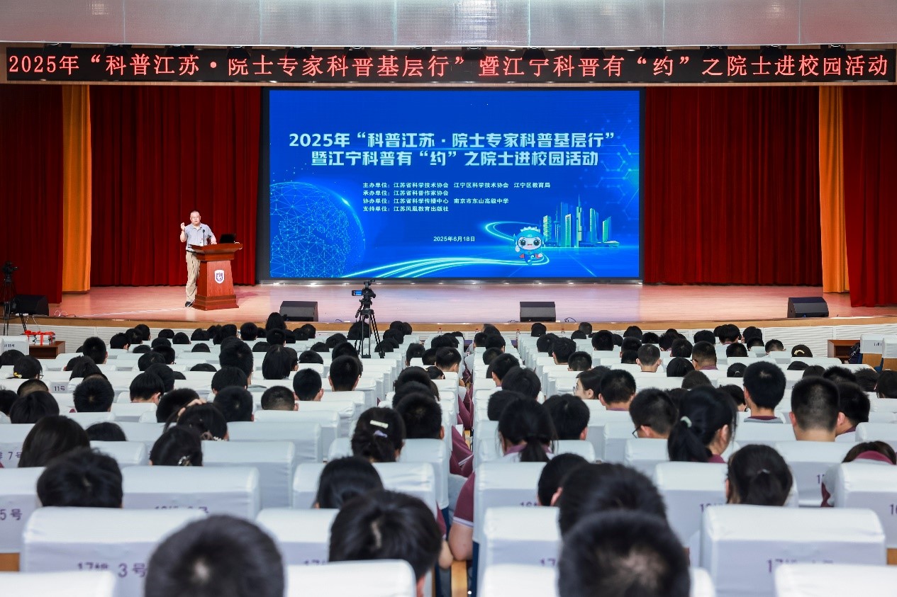 6月18日,2025年“科普江苏·院士专家科普基层行”暨江宁科普有“约”之院士进校园活动在江苏南京举行,通过“讲座+互动+赠书”的形式,点亮青少年的科学梦,培育新时代科技创新后备力量。